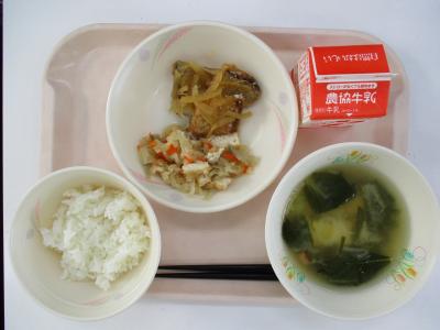 ~ごはん、能登産さばの南蛮漬け、あいまぜ、とうふのみそ汁、牛乳~