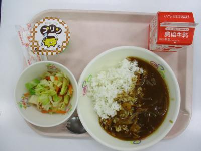 ~(麦飯)、シーフードカレー、即席漬け、牛乳、プリン~