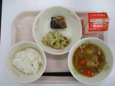 ~ごはん、さばみそ煮、キャベツのごま和え、肉じゃが、牛乳~