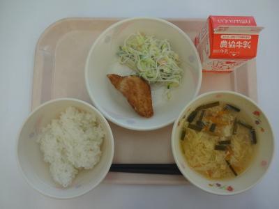 ~ごはん、鶏のからあげ、春雨のサラダ、酸辣湯、牛乳~