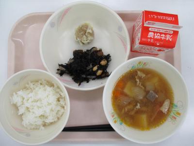 ~ごはん、シュウマイ、ひじきの炒め煮、じゃがいものうま煮。牛乳~