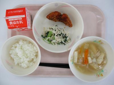 ~ごはん、あじ切り身フライ、切干大根のサラダ、みそ汁、牛乳~