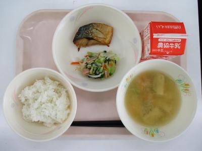 ~ごはん、さばの香味焼き、ハムとキャベツの和え物、みそ汁、牛乳~