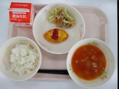 ~ごはん、オムレツ、野菜炒め、ミネストローネ、牛乳~