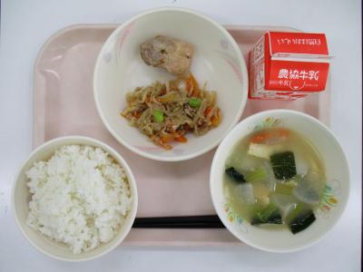 ~ごはん、てりやきチキン、切干大根のそぼろ炒め、けんちん汁、牛乳~