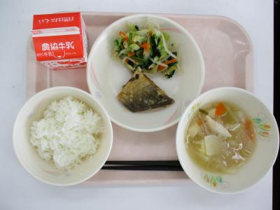 ~ごはん、揚げ魚の米粉で南蛮、キャベツともやしのあえ物、みそ汁、牛乳~