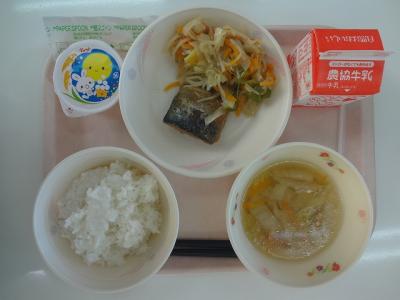 ~ごはん、さばみそ煮、野菜炒め、具だくさん汁、牛乳、十五夜デザート~