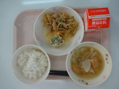 ~ごはん、野菜しゅうまい、豚キムチ炒め、みそ汁、牛乳~