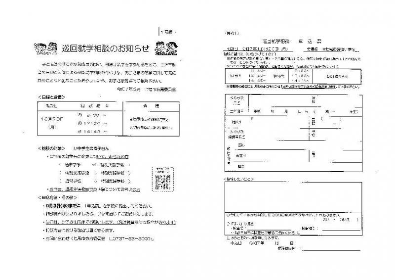 2025年7月2日 12時56分巡回就学相談のお知らせ