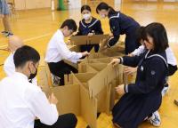 1年生 簡易ベッドづくりや本校備蓄倉庫見学など 講師 中能登町役場 危機管理課 敞田 洋介さん