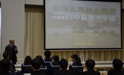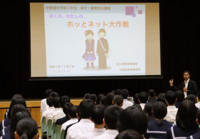 この日は1・2年生を対象に『非行被害防止講座」も行われました。 講師 石川県教育委員会 山崎 洋さん