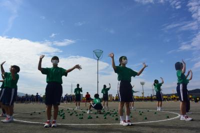 中能登町おにぎりダンスも1年学年種目玉入れとコラボして披露!