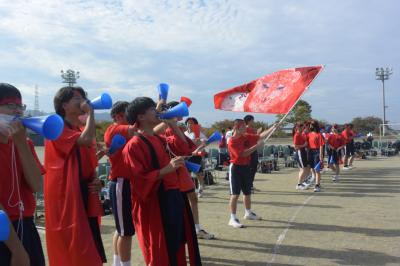 10月18日(金)晴天に恵まれ、生徒たちが楽しみにしていた体育祭が開催されました。自分たちでデザインした各クラスのTシャツで、団ごとに学年種目やリレーで盛り上がりました。