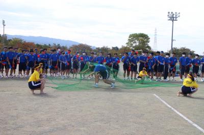 中能登中ならではの部活動リレーでは、各部の技を披露。走りで勝負グループでは、若手の教員チームも1位のチームをかなり追い上げました。