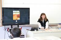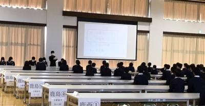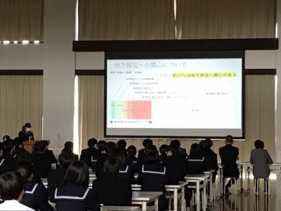 今後の町の医療の在り方や、SNSを活用した町づくり、イベントのアイディアや観光客を呼び込むために実際に作成したパンフレットの紹介、町活性化に向けて納税額増加、企業の誘致、特産品についてなど、近隣と比較したデータをグラフで示したり、実際に自分たちが作成したアンケート結果等から分析したりしたことなどを交えて、プレゼンテーションを行い、発表していました。