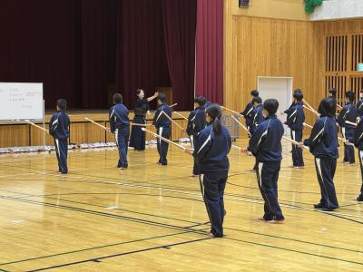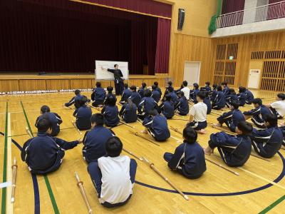 寒い中でしたが生徒は元気よく大きな声で「メン!」と発声し、楽しく剣道を学んでいました。