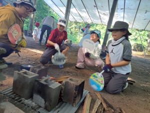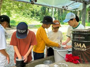 午後からは、野外炊飯。4チームに分かれて協力して取り組んでいました。