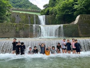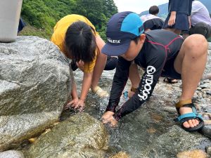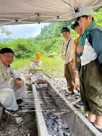 目っこ谷で、いわなさばき、川遊び、そして昼食です。