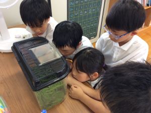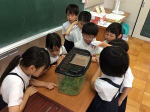 1年生が「かまきり」を見つけてきたので、教室で飼うことになりました。