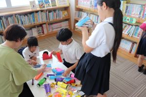 6月中、図書室でふきながしや天の川の飾りを準備してきました。