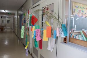 1年生、2年生の教室にも七夕の飾りがありました。