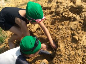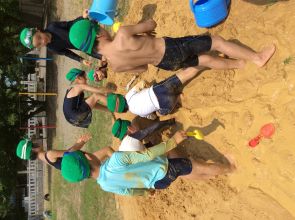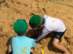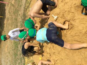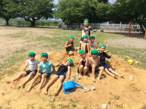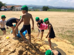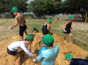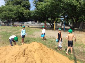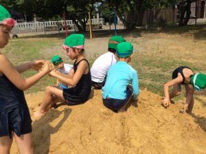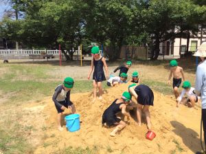 1年生は、昨日、運動場で砂遊びをしました。