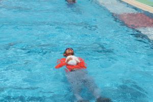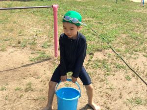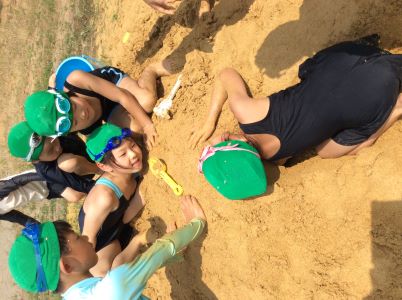 たっぷりと砂遊びをした後、きれいにシャワーを浴びてプールの時間となりました。
