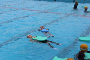 その後は、ビート板を使って浮くことにも挑戦しました。
