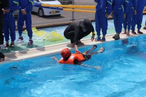 着衣泳の体験の様子を見ていると、毎年実施することで、できることが増え、また、落ち着いて行動に移せるようになっていくと感じました。