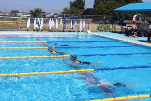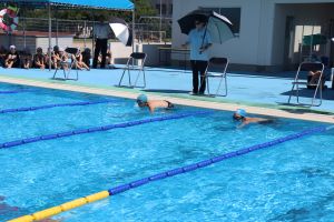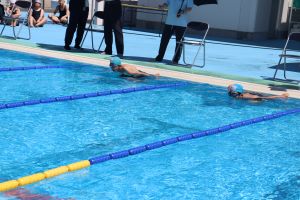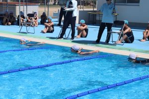 自分の力を出し切って泳いだ人、めあてに向かって泳いだ人、25m泳ぐぞと取り組んだ人とそれぞれにがんばっていました。また、5.6年関係なく友達のがんばりに大きな声援を送っていました。