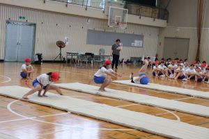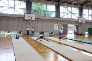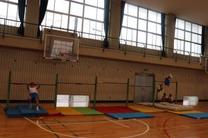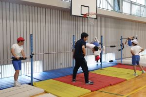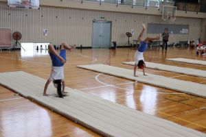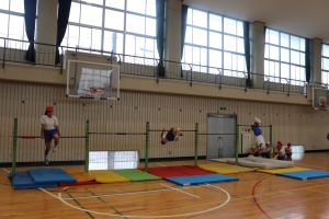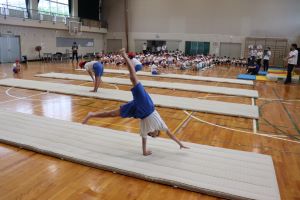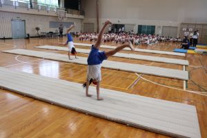 6年生は、明日の器械運動交歓会に向け、練習してきたことをお家の人に見てもらいました。