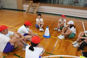 睡眠、朝食など体調管理をすること、準備体操の大切さについて、また、めあてをもって取り組むことについてのお話がありました。
