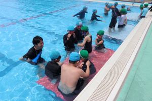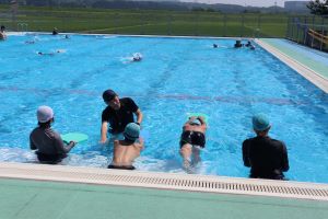 シャワーの浴び方、プールへの入り方など一緒に行います。