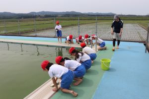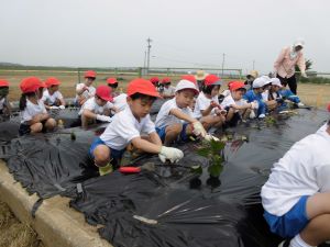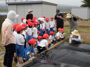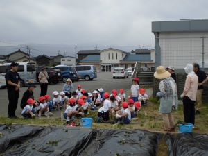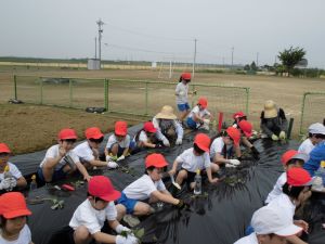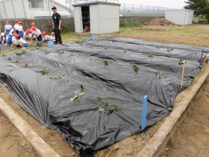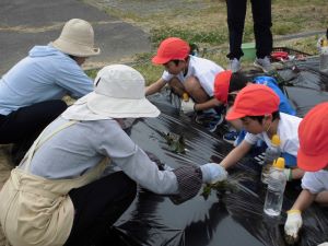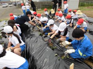先週22日、1.2年生のさつまいもの苗植えでした。