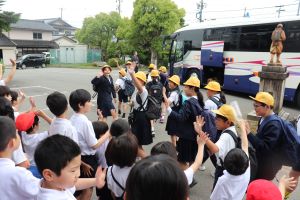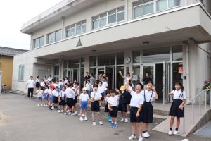 川北小学校で3校が集まり、出発式を行いました。