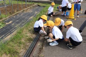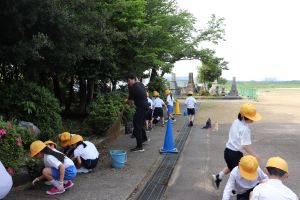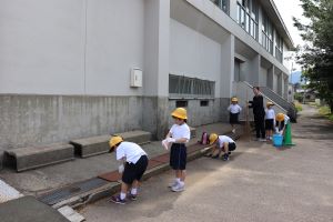 水泳学習のために、これまでの間に、1.2年生が通路、3.4年生が排水の掃除を行ってくれました。