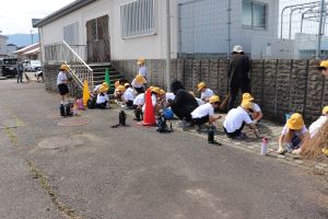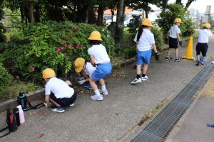 1..2年生は、チームに分かれ、学校からプールまでを順番にきれいにしていきました。