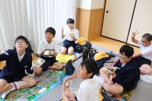 1.2年生がきれいに草をむしってくれた場所にズックを脱ぎ、中に入ります。