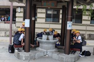 山中座の説明の前に、写真タイムと足湯タイムです。