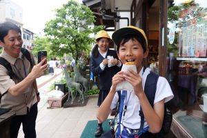おみやげを買ったり、アイスを食べたりとたっぷりと山中温泉街を楽しみました。