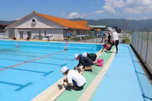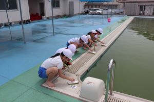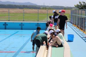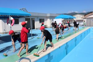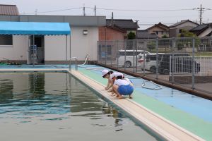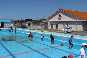 6月のプール開きを前に、低・中・高学年に分かれてプール開きの準備をします。