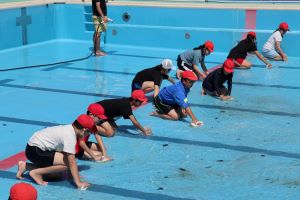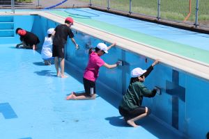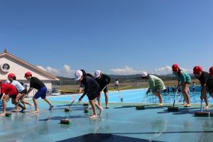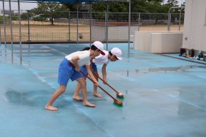 いよいよ、5.6年生によるプール掃除の仕上げです。