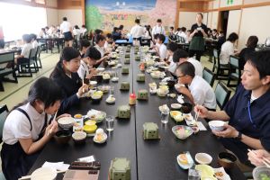 1日目、午前中の活動が終わり、ゆざやで昼食です。