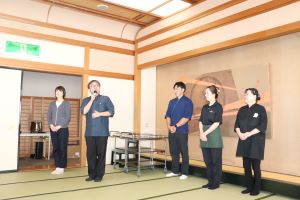 掃除の行き届いた庭木や庭園、歴史ある建物の紹介とたくさんのことを教えていただきました。