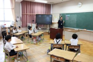 栄養教諭の中尾先生より、給食について説明していただきました。