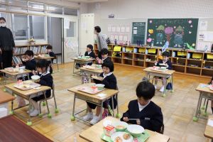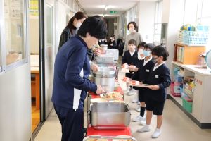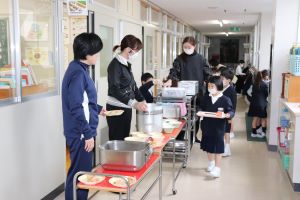 しばらくは、先生方に配膳の手伝いをしてもらいますが、少しずつ自分たちでできるようにしていきます。