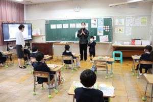 お家の人が学校にきてくれるのがうれしく、昼休みに児童玄関まで見に来ている子もいました。