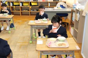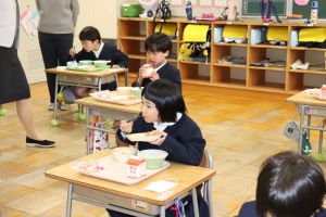 小学校の給食が初めてだと思えないくらい、もりもり、ぱくぱく食べていました。