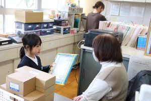 今日は、一人ずつ職員室に入り、職員室にいる先生方にサインをもらっていました。