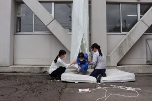 避難訓練の後4.5年生が救助袋の体験を行いました。